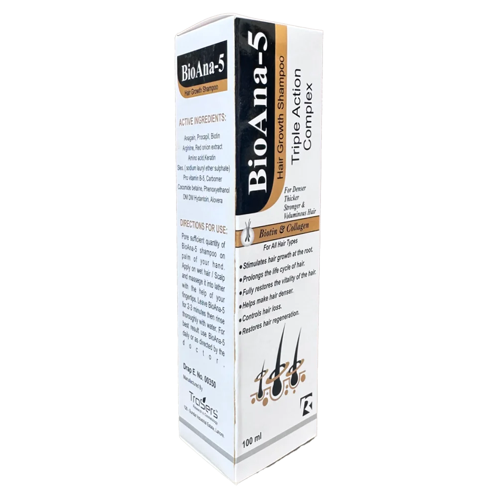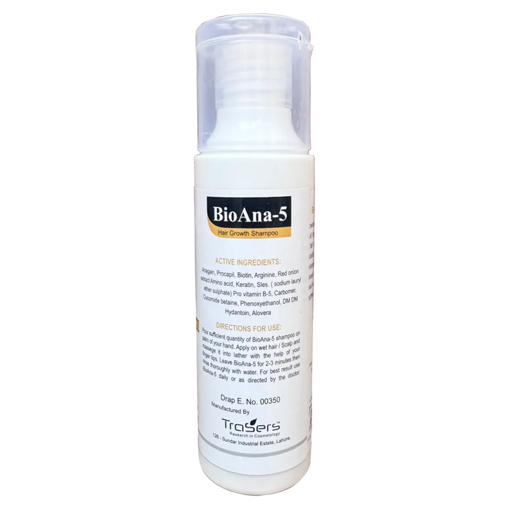 Pore sufficient quantity of BioAna-5 shampoo on palm of your hand. Apply on wet hair / Scalp and massege it into lather with the help of your fingertips. Leave BioAna-5 for 2-3 minutes then rinse thoroughly with water. For best result use BioAna-5 daily or as directed by the doctor.