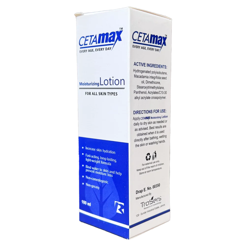 Moisturizing Lotion provides all-day moisturization with a single application and is clinically proven to increase skin hydration CETAMAX Moisturizing Lotion is specifically formulated to soothe your chronically dry skin. it is non-greasy, non-irritating and non-comedogenic, leaving you feeling more comfortable in your own